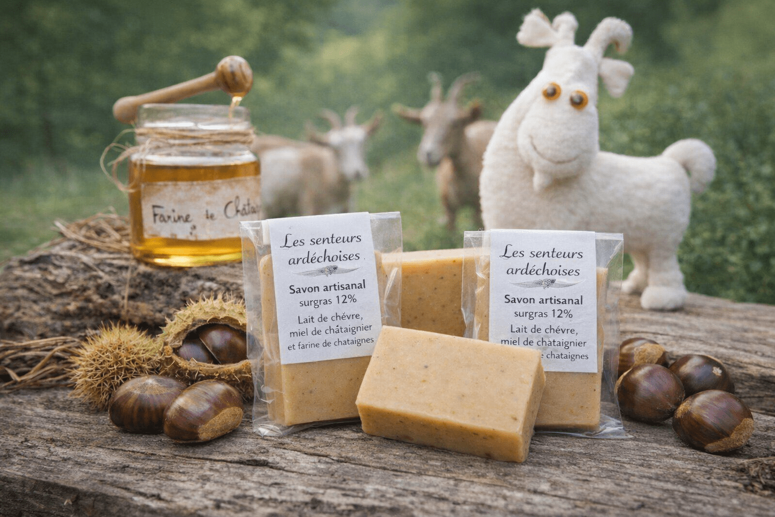 Issus des produits du plateaux ardéchois, ce savon doux au miel de chataignier, à la farine de chataigne et au lait de chèvre ravira le plus grand nombre.
